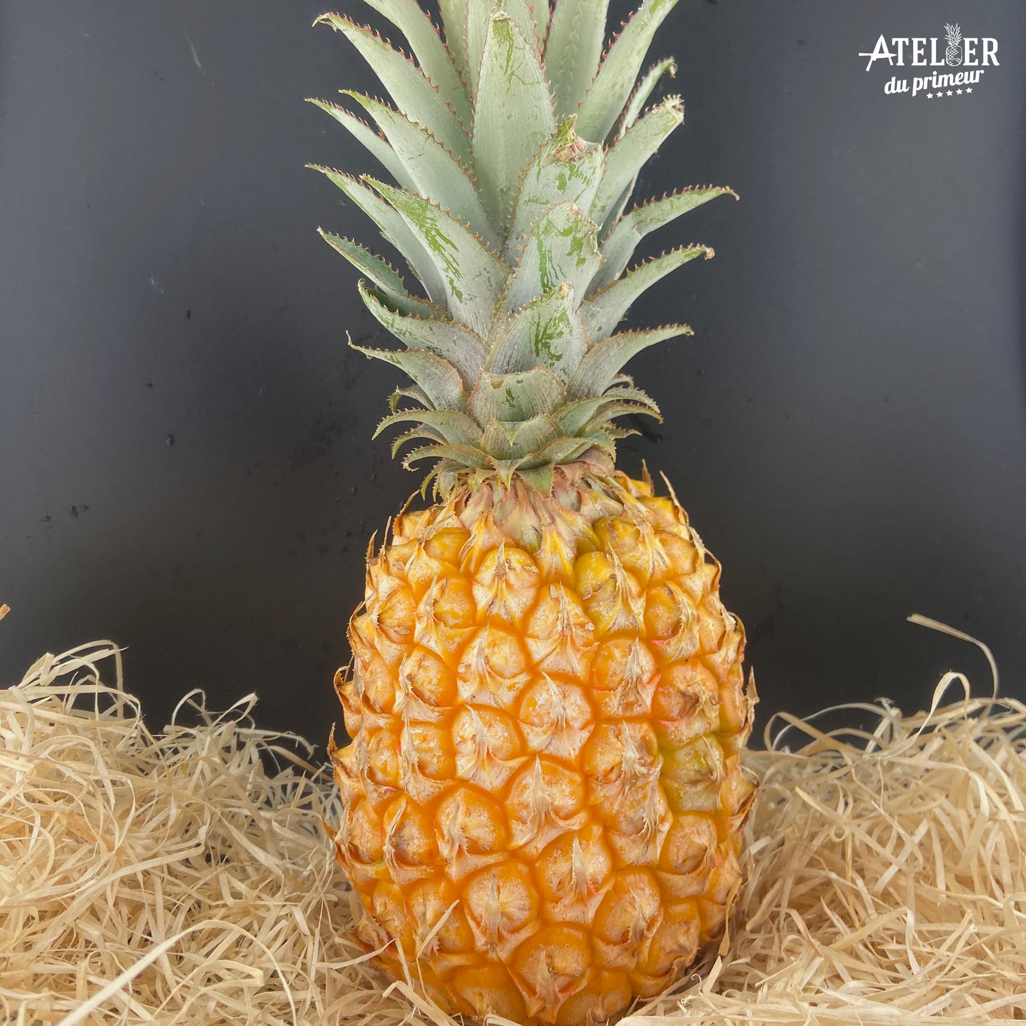 L’ananas Victoria est une petite variété d’ananas, réputée pour sa saveur sucrée, parfumée et légèrement acidulée. Sa chair jaune, tendre et juteuse, est idéale pour être dégustée fraîche, en smoothies, salades de fruits ou desserts. Cultivé principalement à la Réunion et dans les îles voisines, il est apprécié pour sa douceur naturelle et son absence de filaments, offrant une texture agréable à chaque bouchée.